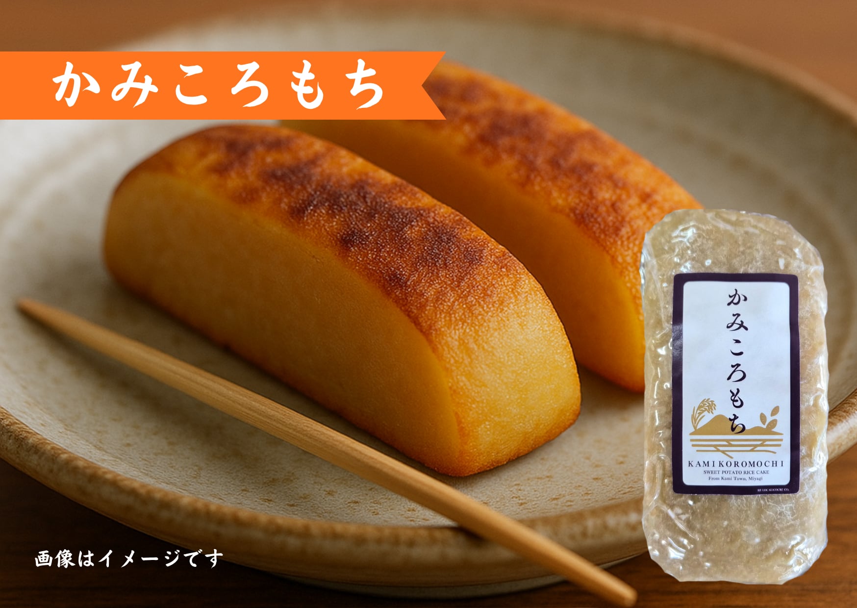 「かみころもち」は、宮城県加美町産のもち米と、自社農園で育てたさつまいもの干し芋、きび砂糖だけで仕上げた無添加の和菓子です。長崎県五島列島の伝統菓子「かんころもち」製法に学び、東北の素材でアレンジした素朴な郷土スイーツ。優しい甘みともっちりとした食感が特徴で、トースターで軽く焼くと香ばしく、中はとろっと伸びる食感に。お茶菓子やお土産、贈り物にもおすすめです。保存料不使用で、小さなお子様からご年配の方まで安心してお召し上がりいただけます。